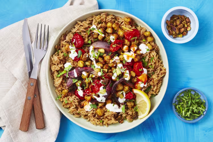 Tuesday: We got Shawarma Spiced Bowls in a Hello Fresh delivery last fall, and I’ve been remaking them from scratch ever since. If your family really wants some meat, you could grill chicken or lamb to go on the side.
